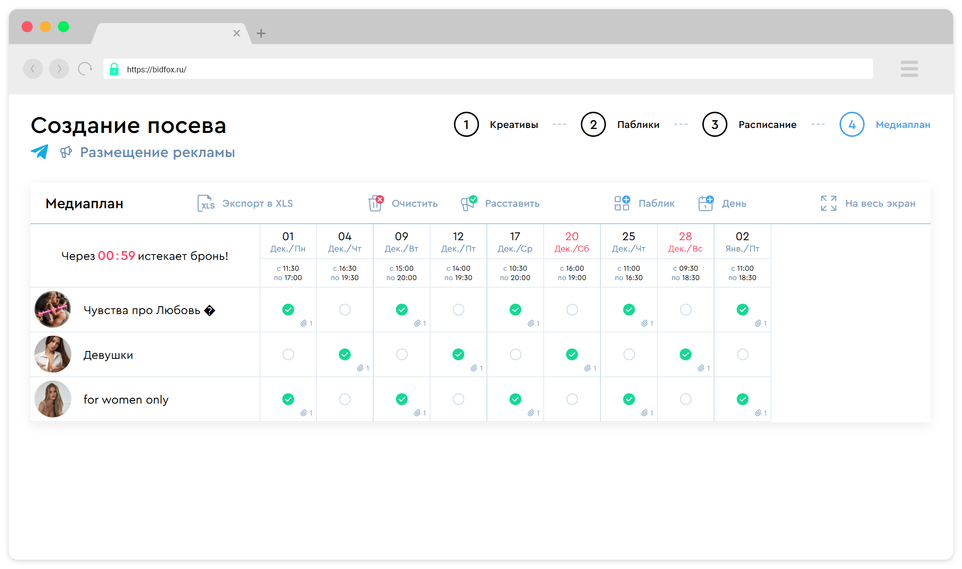 Например, в BidFox, вы сможете быстро разместить рекламные посевы без лишней ручной работы.