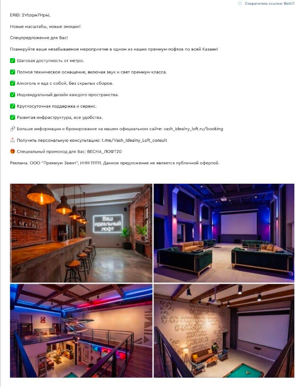 Реклама. ООО «Премиум Звент», ИНН 111111. Данное предложение не является публичной офертой.”