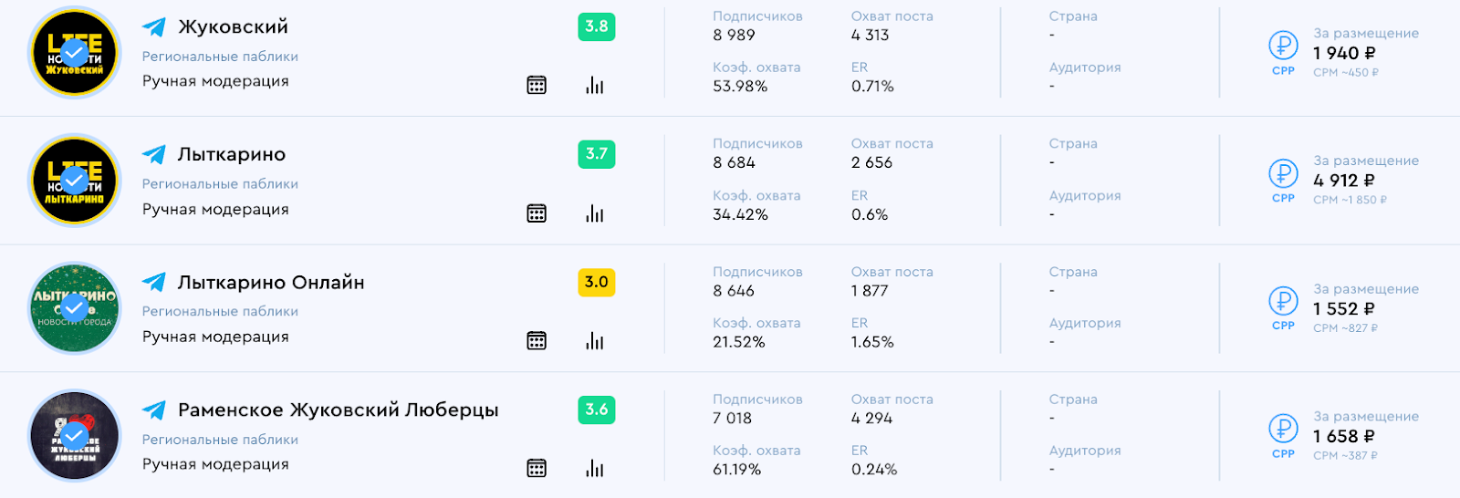 Для размещения в каталоге BidFox были отобраны локальные сообщества в ВКонтакте и Telegram: